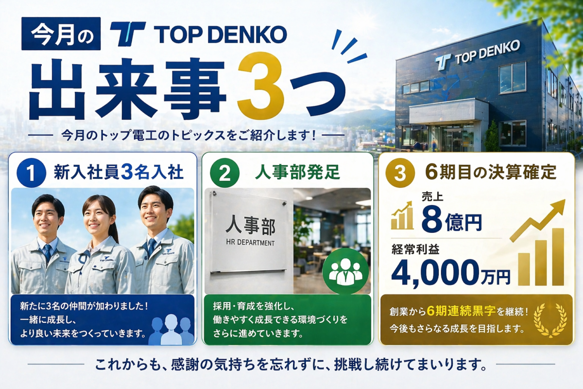 トップ電工は、「気配り」「気働き」という、技術に加えて重要な能力があります。